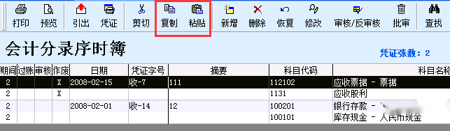 2、单击左上角[复制]—[粘贴],输入凭证日期和凭证字,单击[确定]即可。