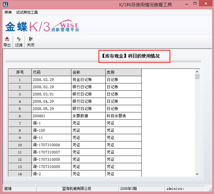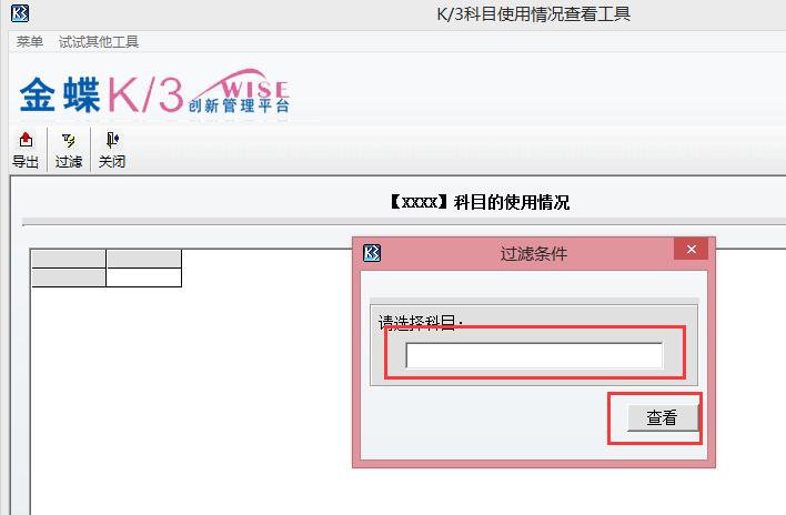 (使用K/3科目使用情况查看工具):