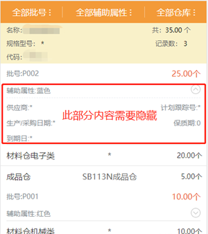 针对需求移动轻应用“库存查询”隐藏辅助属性字段: