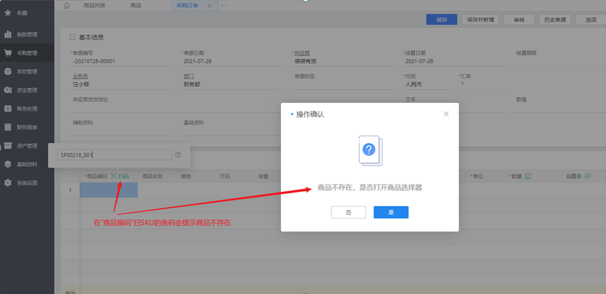 (2)禁用后的SKU不支持开单,包括:扫条码开单、选商品开单;
