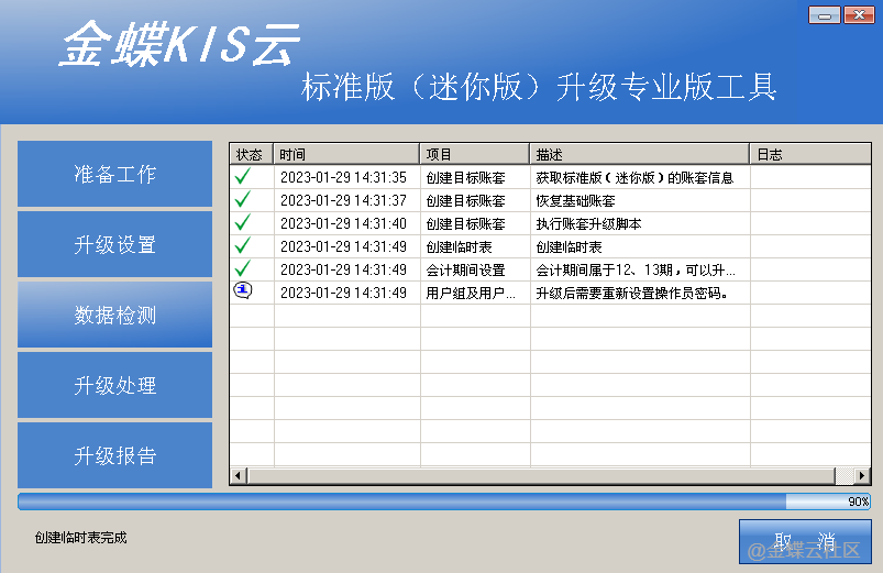 更多说明可点击查看升级指南:金蝶KIS账套数据升级至KIS云专业版的账套数据升级指南。