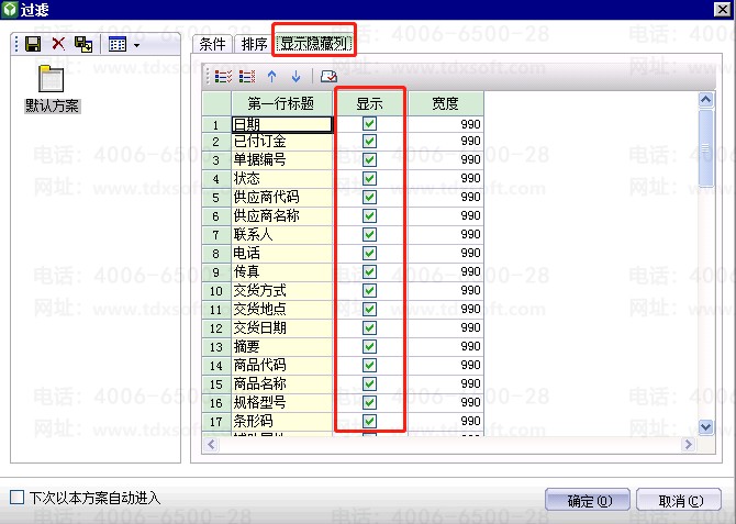 kis商贸系列购货单序时簿中如何隐藏列?