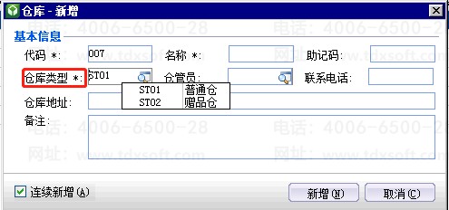 新增仓库类型为[赠品仓]仓库,通过购货单或其他入库单入库,仓库选择赠品仓即可。