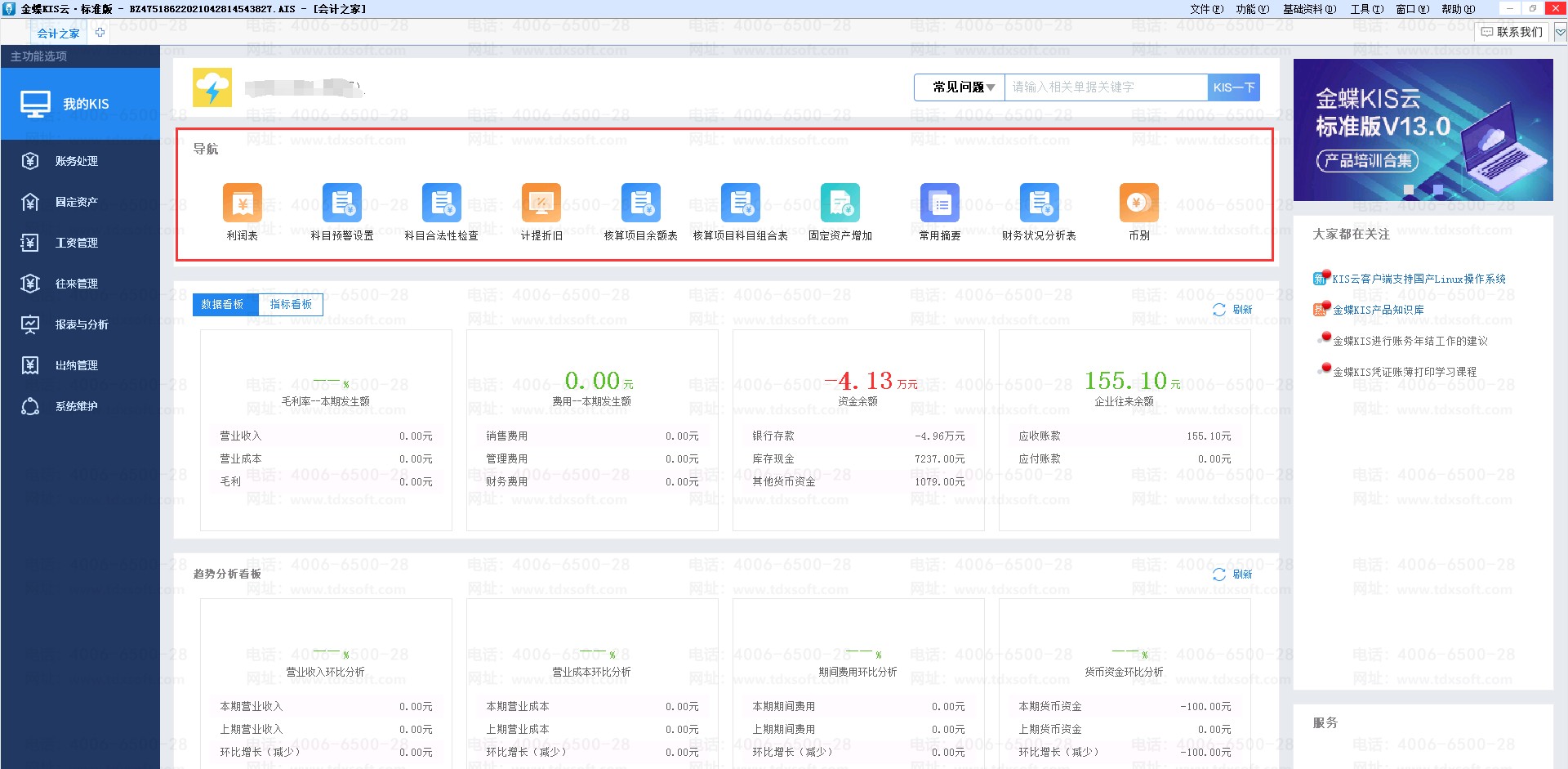 标准/迷你版的会计之家界面的导航最大能显示几个?