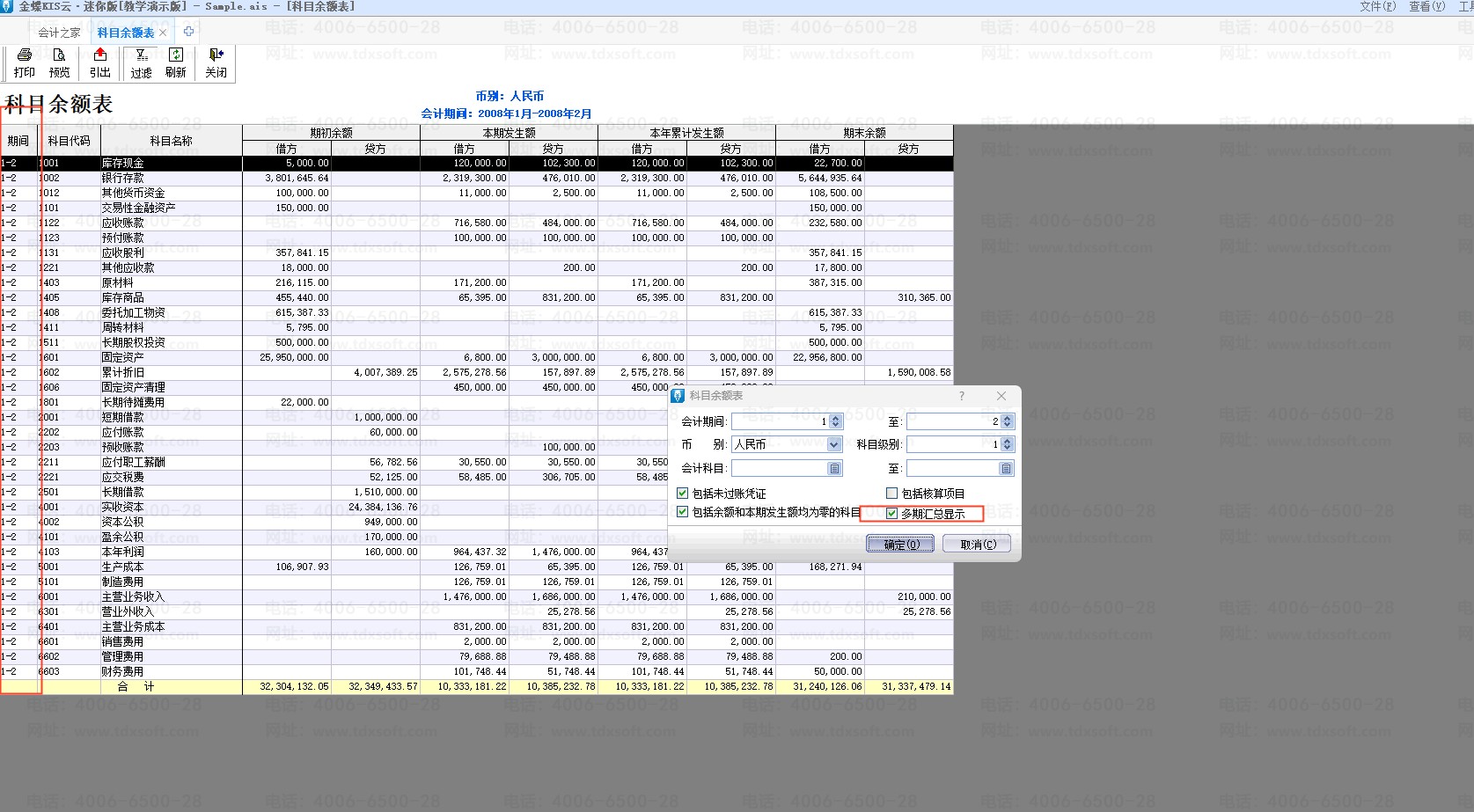 金蝶标准/迷你版科目余额表想查全年的数,结果只能查到一个月的