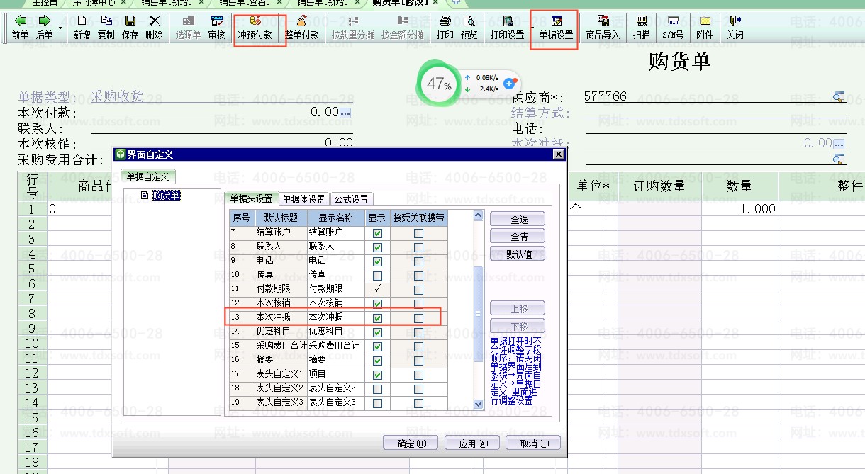 kis商贸版软件采购收货上面冲预付款按钮是灰色的。