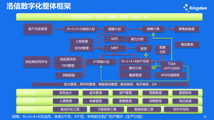 通过运营管理与生产业务的纵向打通,上下游合作伙伴业务的横向集成,利用云之家、金蝶云星空、SRM等系统完成浩信与员工、浩信与供应商、浩信与客户的互利共生平台,达到将本增效、合作共赢的目的。