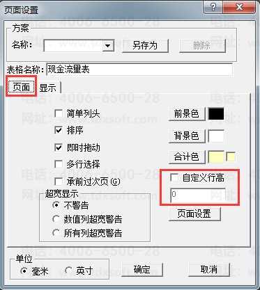 2、选择[页面]页签,勾选“自定义行高”,输入对应数值即可。