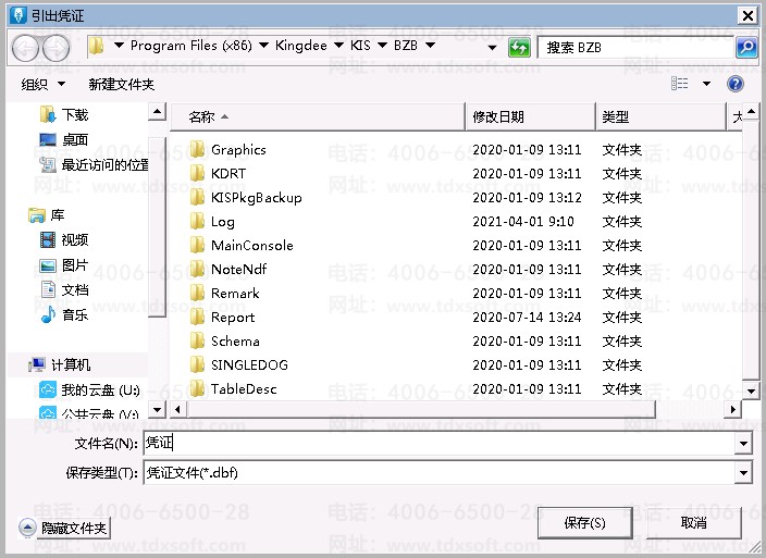 2、选择引出文件存放的路径,以及名称,点击保存后,选择引出凭证的日期范围以及凭证类型,点击[确认],凭证即引出,引出为dbf的凭证文件;