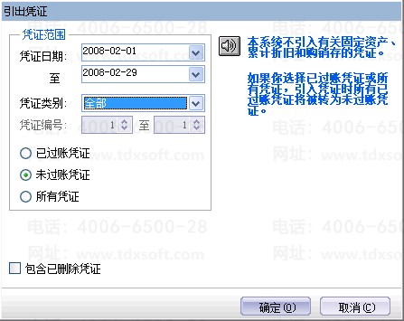 2、选择引入凭证的源账套,点击[打开],选择引入凭证的日期范围以及凭证类型,点击[确认],凭证即引入成功。