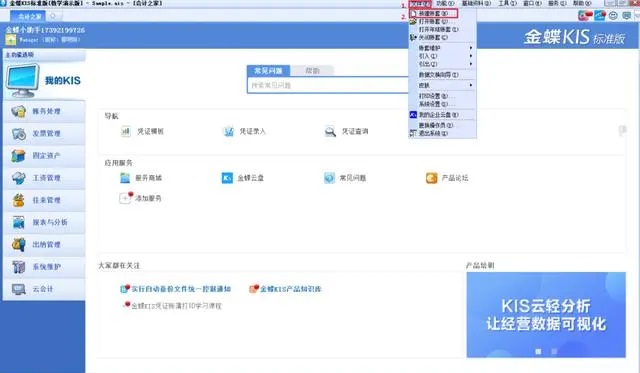 登录金蝶KIS迷你版标准版软件后,点击【文件】-【新建账套】菜单;