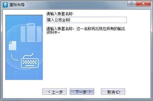 3.点击【下一步】,在账套名称里输入公司全称;