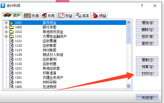 2.点击会计科目的打印功能