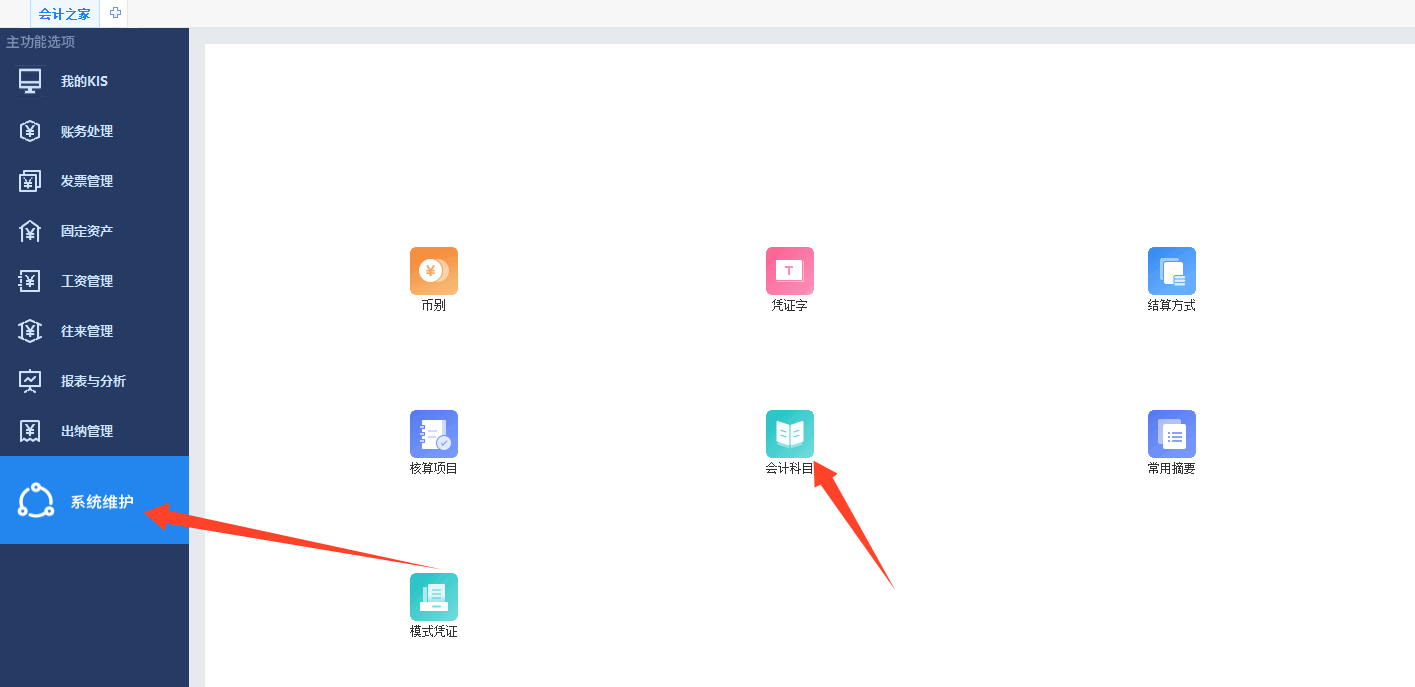 1.点击系统维护内的会计科目