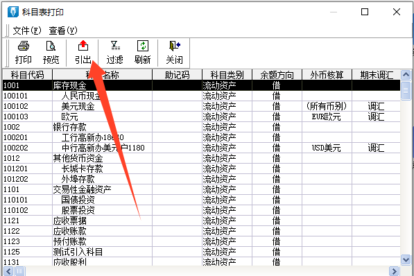 3.点击打印之后可以点击引出引出科目资料数据。