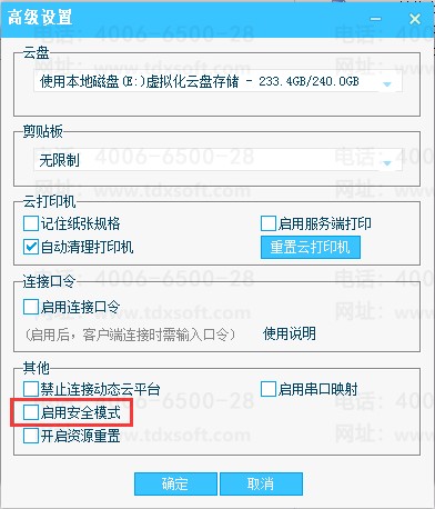 在服务器上的KIS云服务器程序中点击高级设置,取消勾选【启用安全模式】。