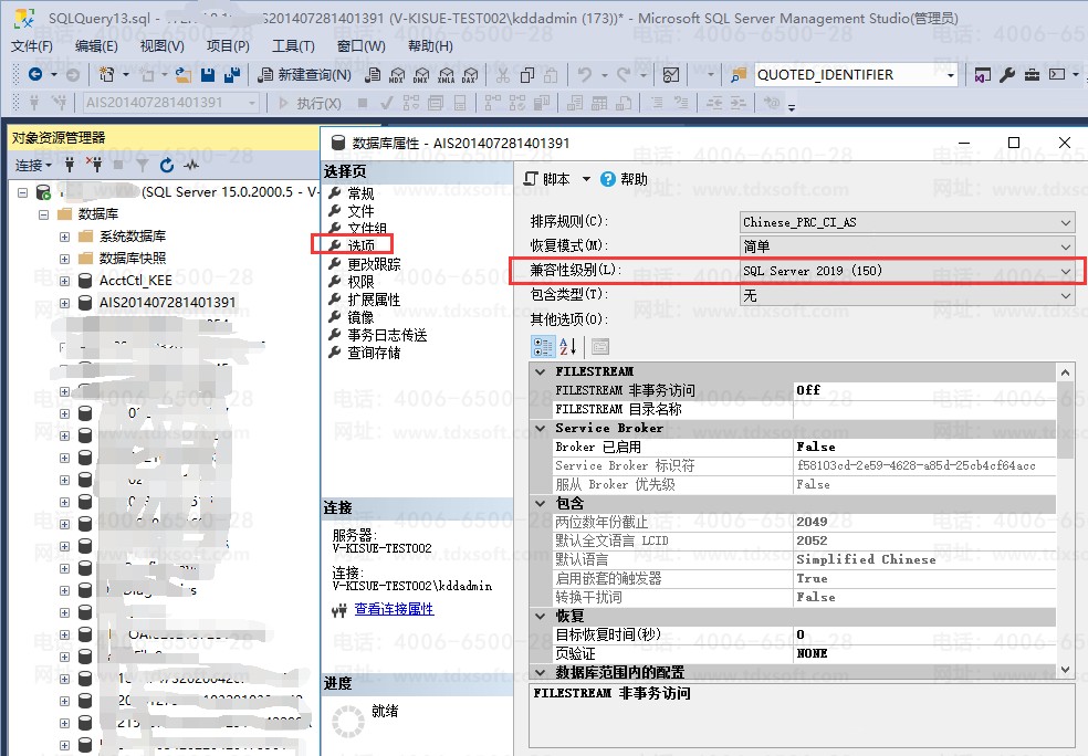 五、 调整数据库实体的兼容性级别到可选到的最高版本级别。