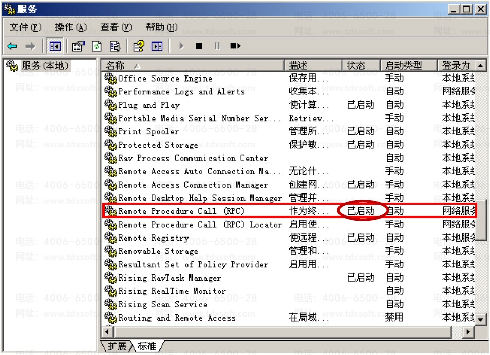 打开【控制面板】→【管理工具】→【服务】,检查 RPC 服务是否启动,动态 COM+是否启动,DTC 服务是否启动,如图 5、图 6: