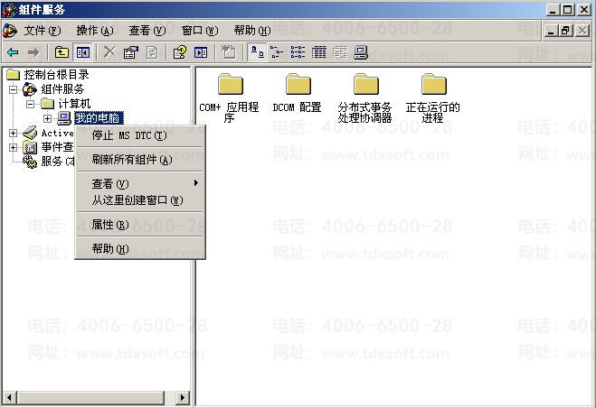 依次打开【控制面板】→【管理工具】→【组件服务】,如图 3,查看组件服务中【我的电脑】,右键【属性】: