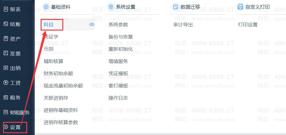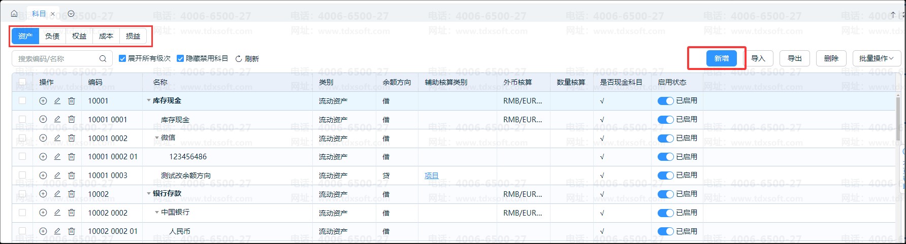2、先在科目列表,设置好科目信息 (可自行增加/删减科目或者设置辅助核算);