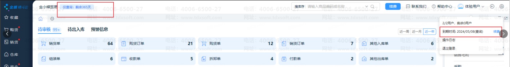 账套到期前30个自然日会显示到期时间,若账套已到期,规则如下: