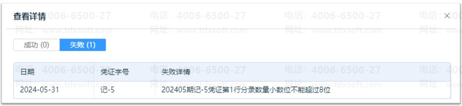 导入凭证失败提示:第x行分录数量小数位不能超过8位?